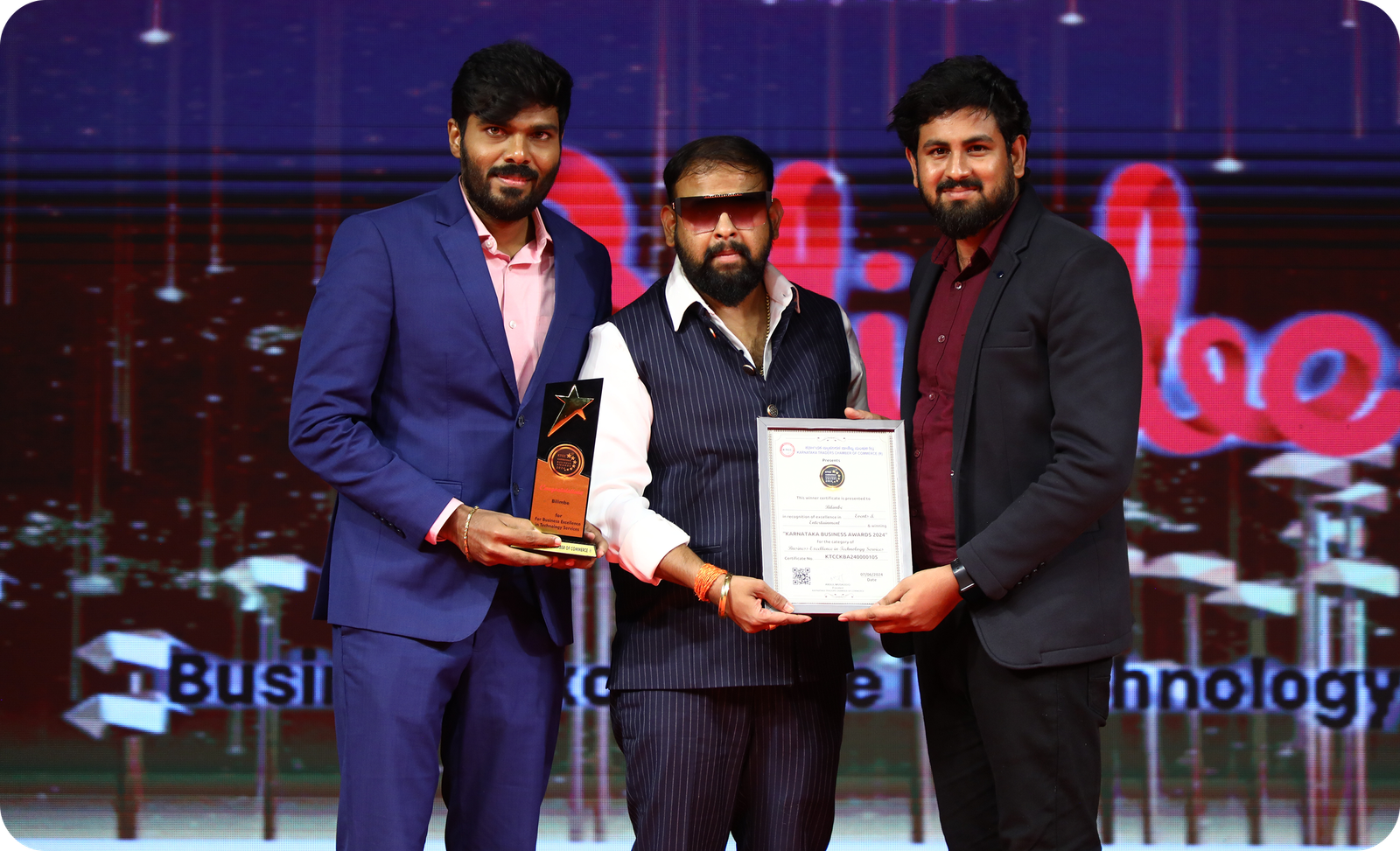 Award of Excellence 2024 – Business Excellence in Technology Service, by the Karnataka Traders Chamber of Commerce